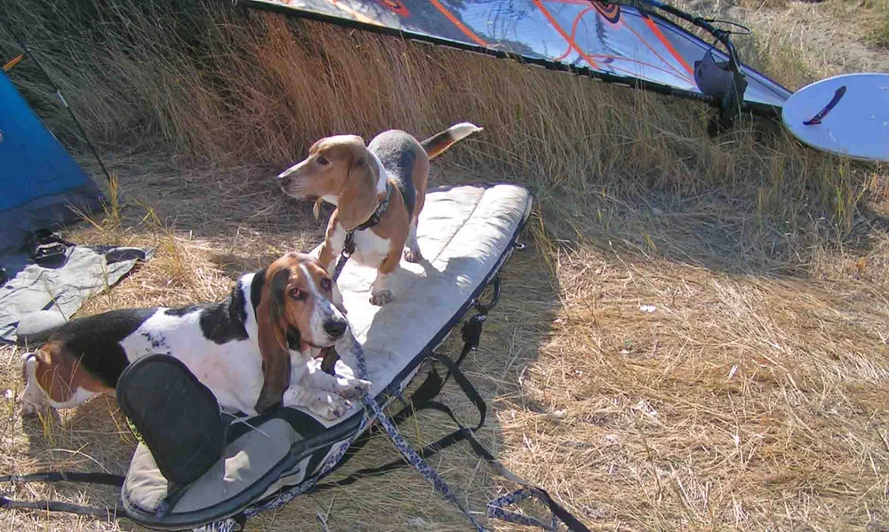 Elvis e cara gosta de Windsurf! E acampamento! Como eu e todos os outros cães de surf humanos e caninos que conhecemos. Foto: (c) Barb Ayers, Dogdiary.org