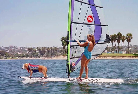 Os filhos do meu cachorro e eu começamos o Windsurfing em Mission Bay em San Diego